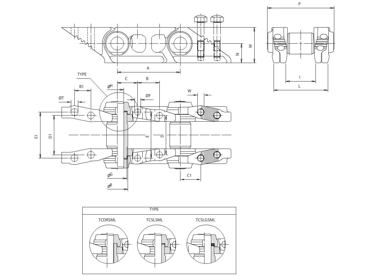 Type TCSLSML Track chain type | A 260,4 Link pitch | B 76,2 Bolt hole pattern | C 87,3 Bolt hole pattern position |